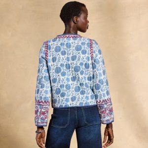 Our lightweight quilted jacket is awash in florals and embellished with vintage-inspired embroidery. Zip front with contrast color pull-tie and lovely piped finishes. Cotton voile. Machine wash. Imported. Exclusive. Sizes XS (0?C2). S (4?C6). M (8?C10). L (12?C14). XL (16?C18). XXL (20?C22). Approx. 22.5l.