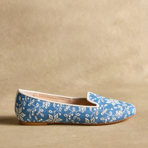 Ladylike florals cascade across the tops of our textile/leather flats with leather soles. Such an easy way to dress up the everyday. Handcrafted in Italy. Exclusive. Euro whole sizes 36–41. 36 (US 6). 37 (US 7). 38 (US 8). 39 (US 8.5). 40 (US 9). 41 (US 10).