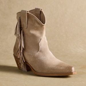 Go where the wind blows in these fringed. free-spirited short boots with side zip and pull-tabs for comfort and ease. Calf leather suede with rubber soles. Handcrafted in Italy. Exclusive. Euro whole sizes 36?C42. 36 (US 6). 37 (US 7). 38 (US 8). 39 (US 8.5). 40 (US 9). 41 (US 10). 42 (US 11). Approx. 2 heel.