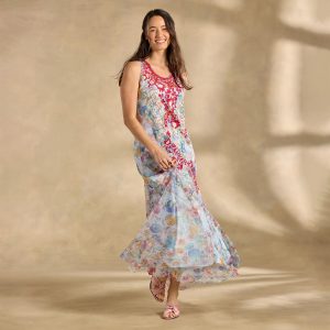 You’re stunning in this intricately embroidered mesh dress with a gorgeous A-line silhouette with full sweep skirt. Scoop neck. Separate slip included. Nylon. Dry clean. Imported. Sundance exclusive. Sizes XS (4). S (6). M (8–10). L (12). XL (14). XXL (16). 58l.