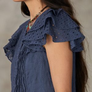 Allover tonal embroidery. flutter sleeves. pintuck details and lace panel enhance this ultrafeminine blouse. Fully lined. Polyester. Hand wash. Imported. Sizes XS (0-2). S (4-6). M (8-10). L (12-14). XL (16-18). XXL (20-22). Approx. 25l.