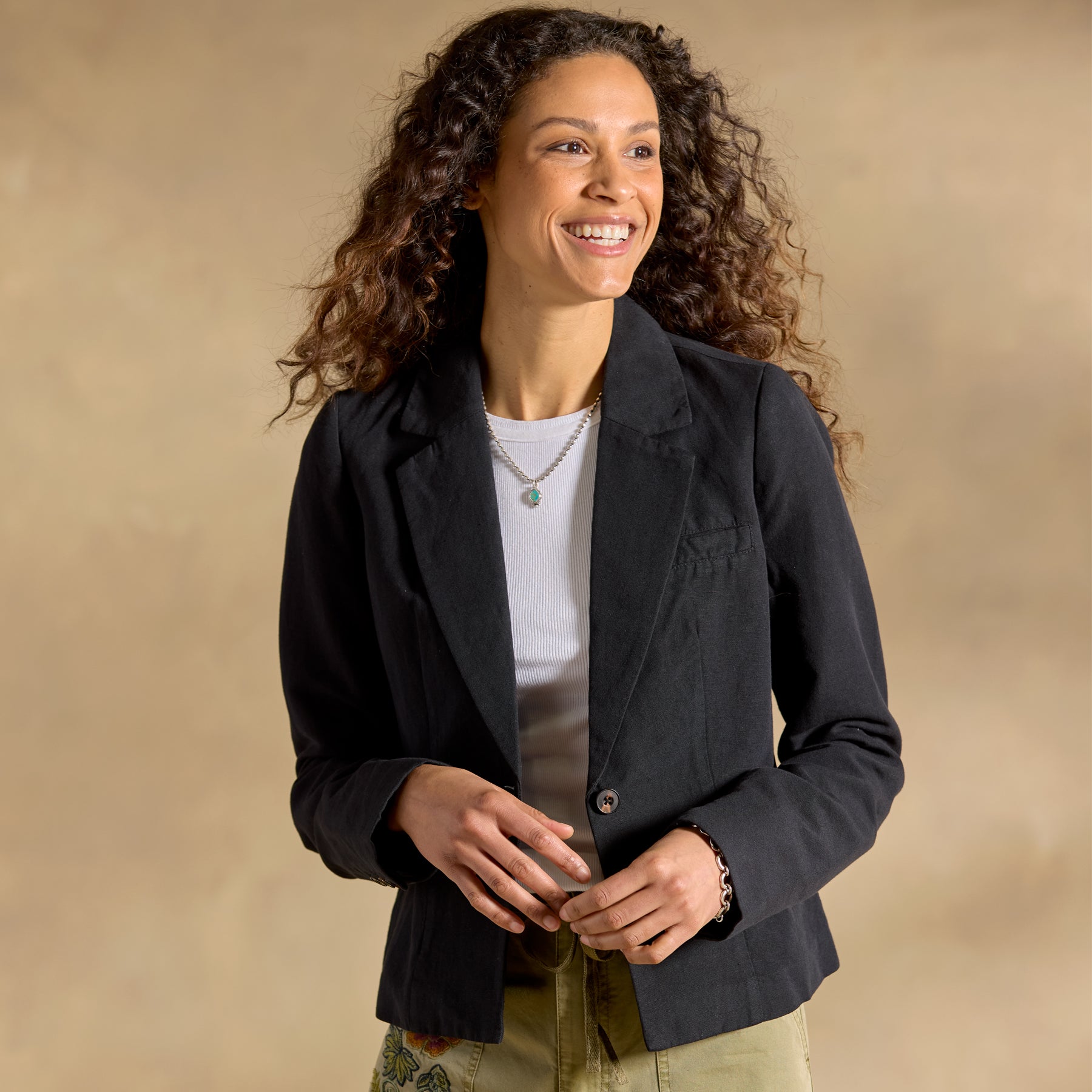 Meet the topper that’s getting double-takes all over town: our Picador Blazer. Lightweight and tailored to perfection. it features a classic fit with a flattering shorter length that hits right at the waistband of your pants or skirt. Contrast lining. Cotton/linen. Machine wash. Imported. Exclusive. Sizes XXS (00). XS (0–2). S (4–6). M (8–10). L (12–14). XL (16–18). Approx. 19.5l.